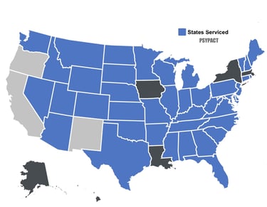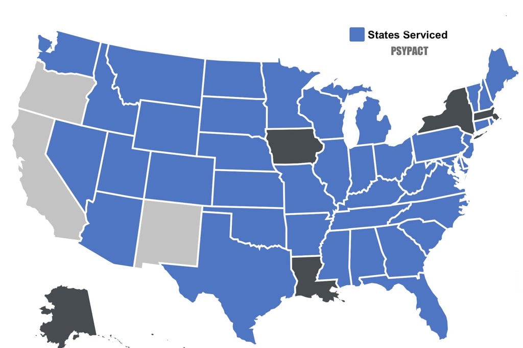 Consultation services are provided across participating PSYPACT States, allowing patients to access specialized mTBI / Concussion services regardless of location